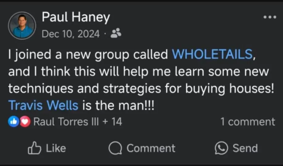 I don’t just talk theory—I do this LIVE in my private group, Wholetails. Just yesterday, I jumped on a live call and analyzed real deals with my members for over an hour. This is hands-on training—not some cookie-cutter course.